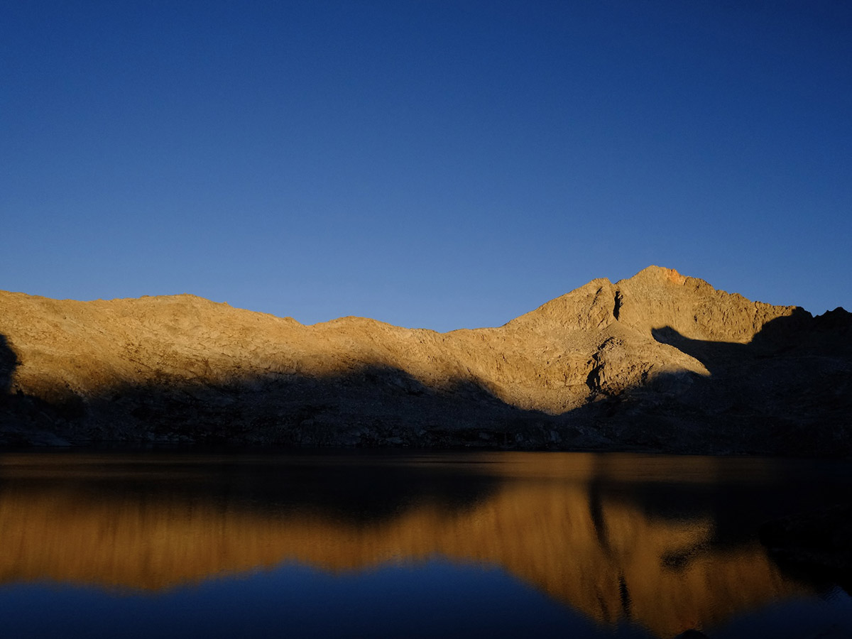 予定通り4:00に出発。ヘッドライトの明かりを頼りにミューア・パスへと進んでいく。満天の星空と半月の下、凍った土を踏みしめる音だけが聞こえる。パス直前のヘレン・レイク付近で迎えた夜明けは、とても美しかった。