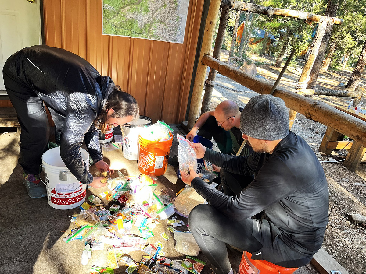 ミュア・トレイル・ランチでの1コマ。奥のバケツにも食料がぎっしり。