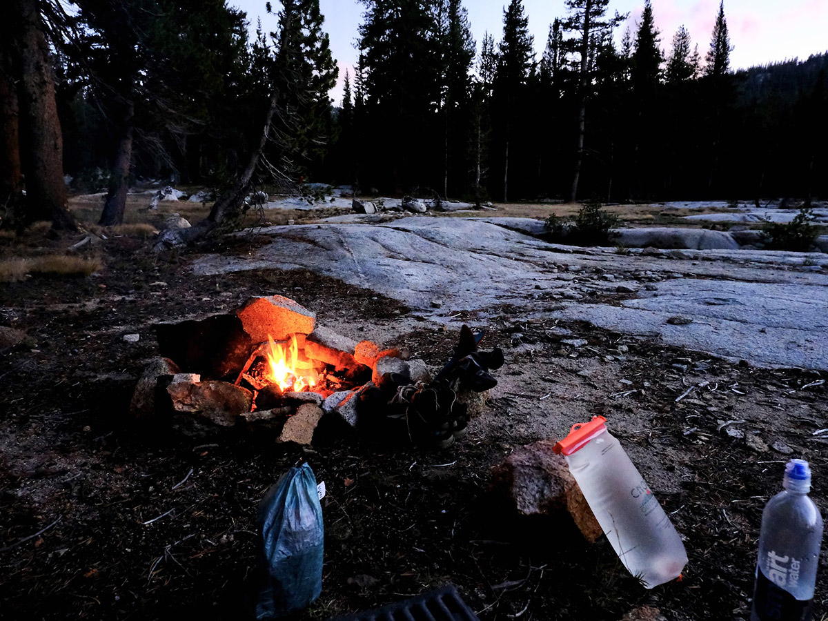 ちょうど近くに誰かが作ったファイアサークルがあったので、焚き火で暖を取りながら川で濡れた靴と靴下を乾かした。満天の星空、夜の静寂の中、木のはぜる音だけが耳に届く。豊かな時間に身を預けながら、じんわりとした体の疲労に誘われるように、眠りについた。