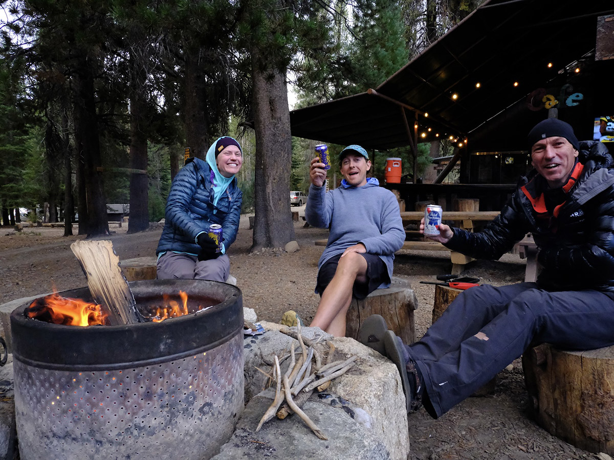 VVRは天国のような環境だった。到着早々、ジューシーな肉と野菜が大量に挟まったチーズバーガーをビールで流し込み、フルーツボウルも注文。フレッシュな味が体に染み渡っていった。施設の中には焚き火スペースがあり、同じくJMTを歩くハイカーたちと夜まで団欒して過ごした。