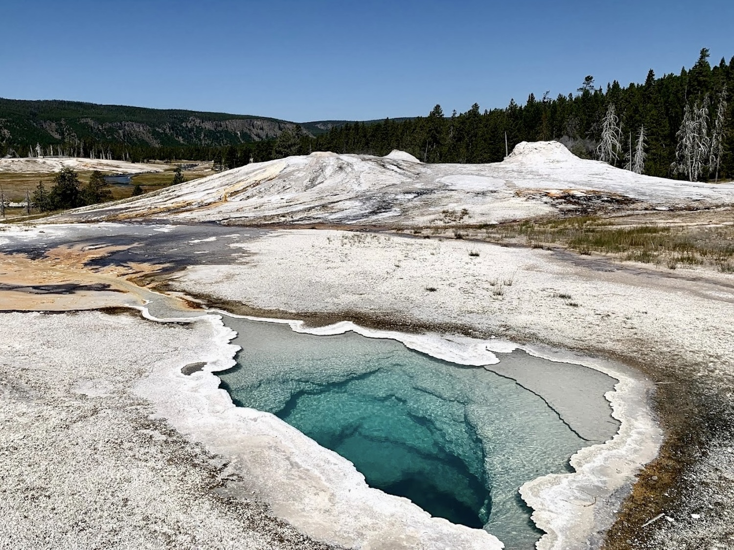 少し歩くと遠くの山肌から温泉が吹き出しているのが見えた。地球の胎動を五感で感じる。