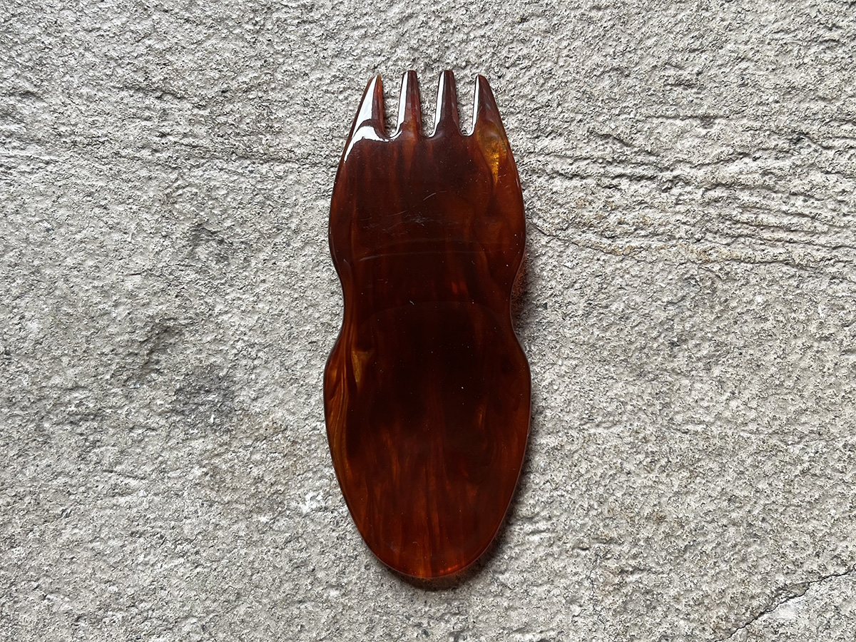 BEJII:最初にアクリルをレーザーカットをして型を作って、その後にアクリルを温めて、その後に曲げていくんです。それでスポーンやフォークの曲線を作っていきます。一つずつ手作りでやってます。