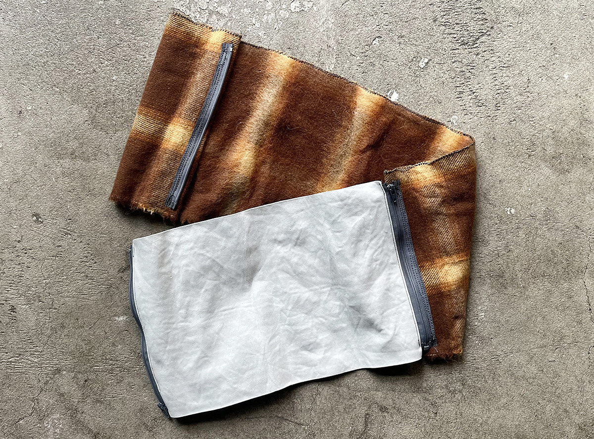 腹巻き (ボディ: (前面) アルパカ混合ウール、(後面) 抗菌PVAスポンジ。重量:124g。製作時間:6時間。)