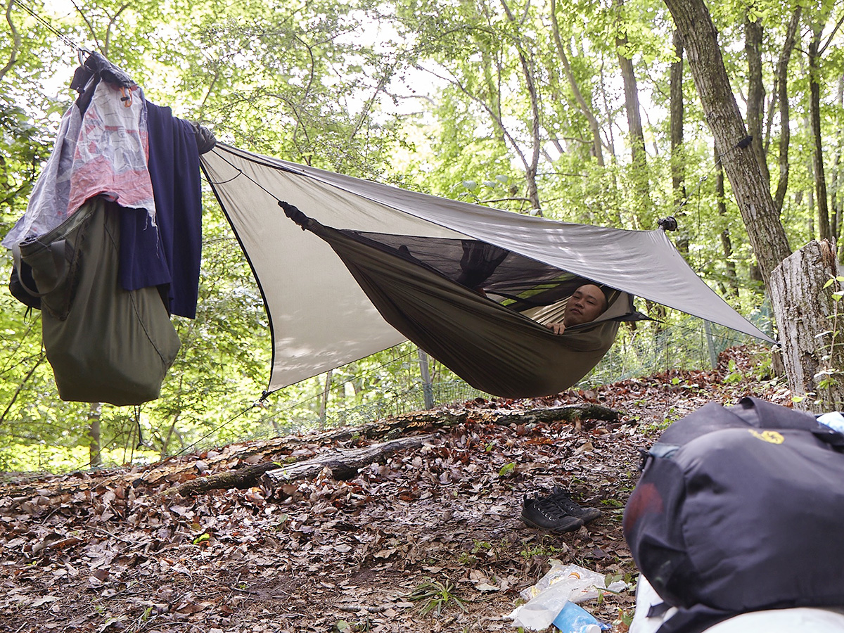 使用ギア:[ハンモック& ストラップ] ENO / SuperSub™ Ultralight Hammock [タープ] GOSSAMER GEAR / Twinn Tarp