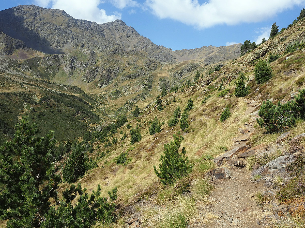 この先にある分岐点に到着。難易度の高いHRPのルートをチョイス。万全を期してリサプライもしたし、通常ルートのGR10 (GRはフランス発祥の長距離歩道 ※2) よりも40km短い。不安もあるがなにより楽しそう、ということでそっちに決めた。通常ルートに戻るのは約6日後だ。