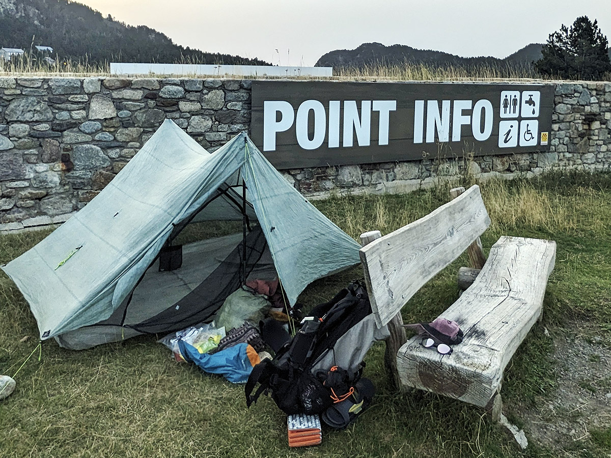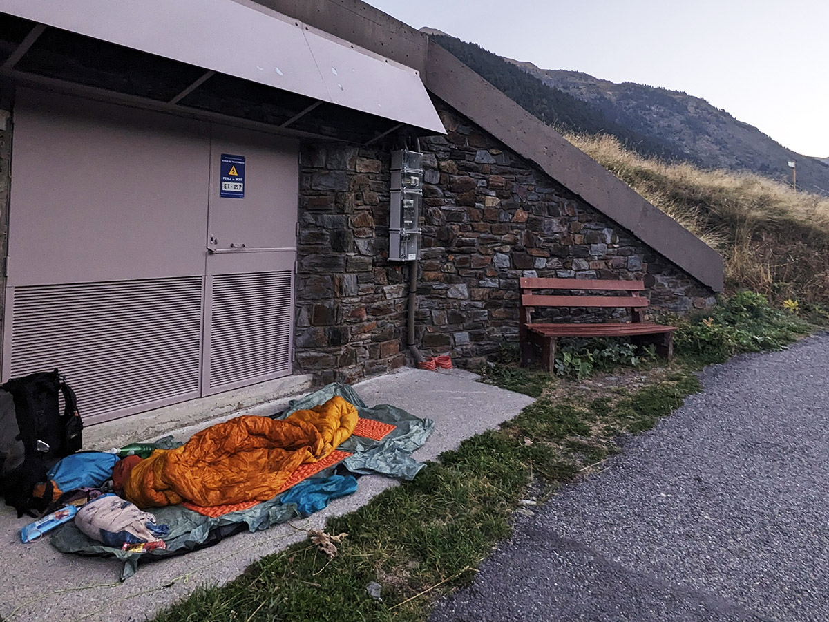 町の郊外に着いてわかったのだが、アルバ峠は国境らしく、気づけばアンドラに足を踏み入れていた。ここから先に適当な野営地がなさそうだったので、屋外電気室みたいな建物のそばでカウボーイキャンプをした。夜空には無数の星が光っていた。
