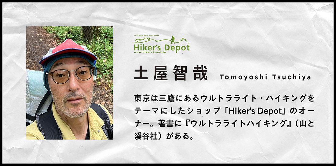 本来ULと製品化というのは非常に相性が悪いものなのだということを改めて痛感。ハイカーズデポ開業当初からのジレンマはやはり永遠の課題だ。ULにあれもこれもを求めてはいけない。オールラウンドな快適性は言わずもがなである。それらは道具に求めるのではなく、ハイカー自身の知恵と工夫に求めるべき部分だ。ULという言葉の認知は広がったが、本来の意味が薄まりつつある今だからこそ、ULに興味関心をもつ全てのハイカーにULのゴッドファーザー、グレンの言葉が少しでも刺さってくれたら。」(土屋)