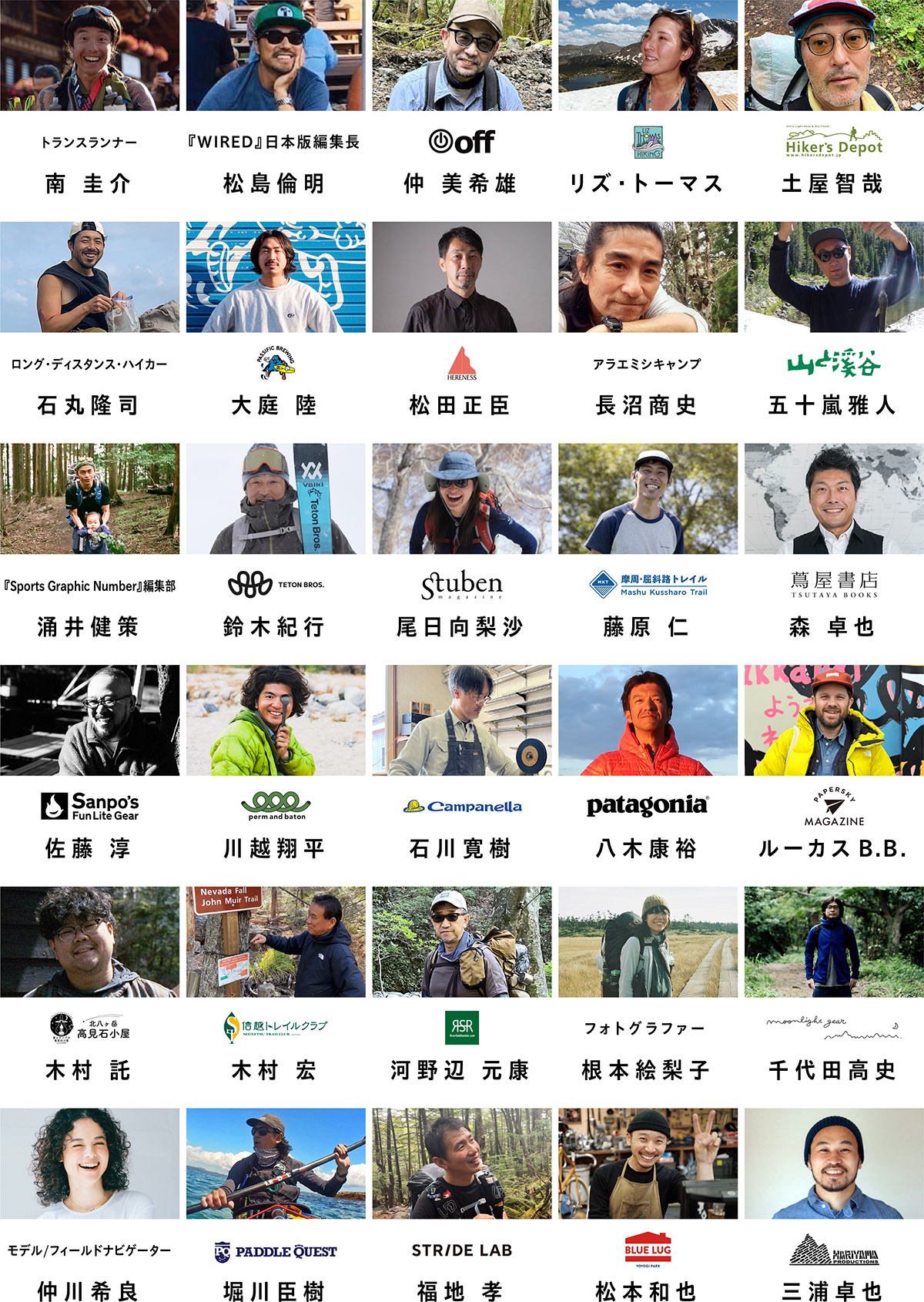 マイベスト記事を選んでくれたのは、僕たちTRAILS編集部がリスペクトし、独自の編集観点で選出させていただいたTRAILS的感性でイケてる人々。メーカー、ショップ、メディア、書店、編集者、ハイカー、ランナー、釣り人、旅人、クリエイター、トレイルの作り手の方々など、総勢30名です。
