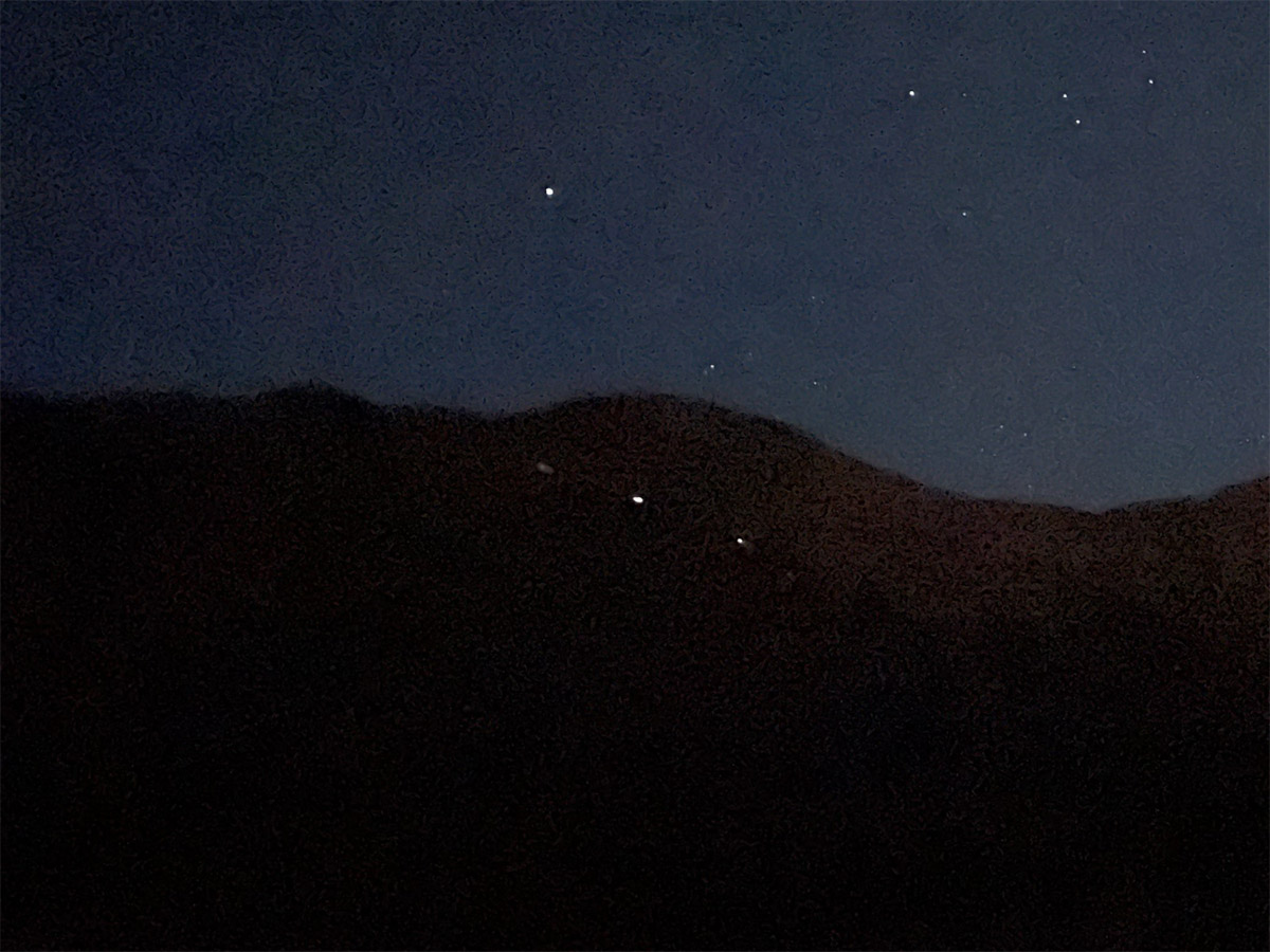 ピークを目指すハイカーの灯りの列。
