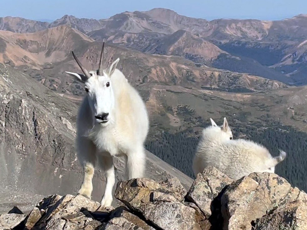 断崖絶壁を自由に駆け回るマウンテンゴートのファミリー。