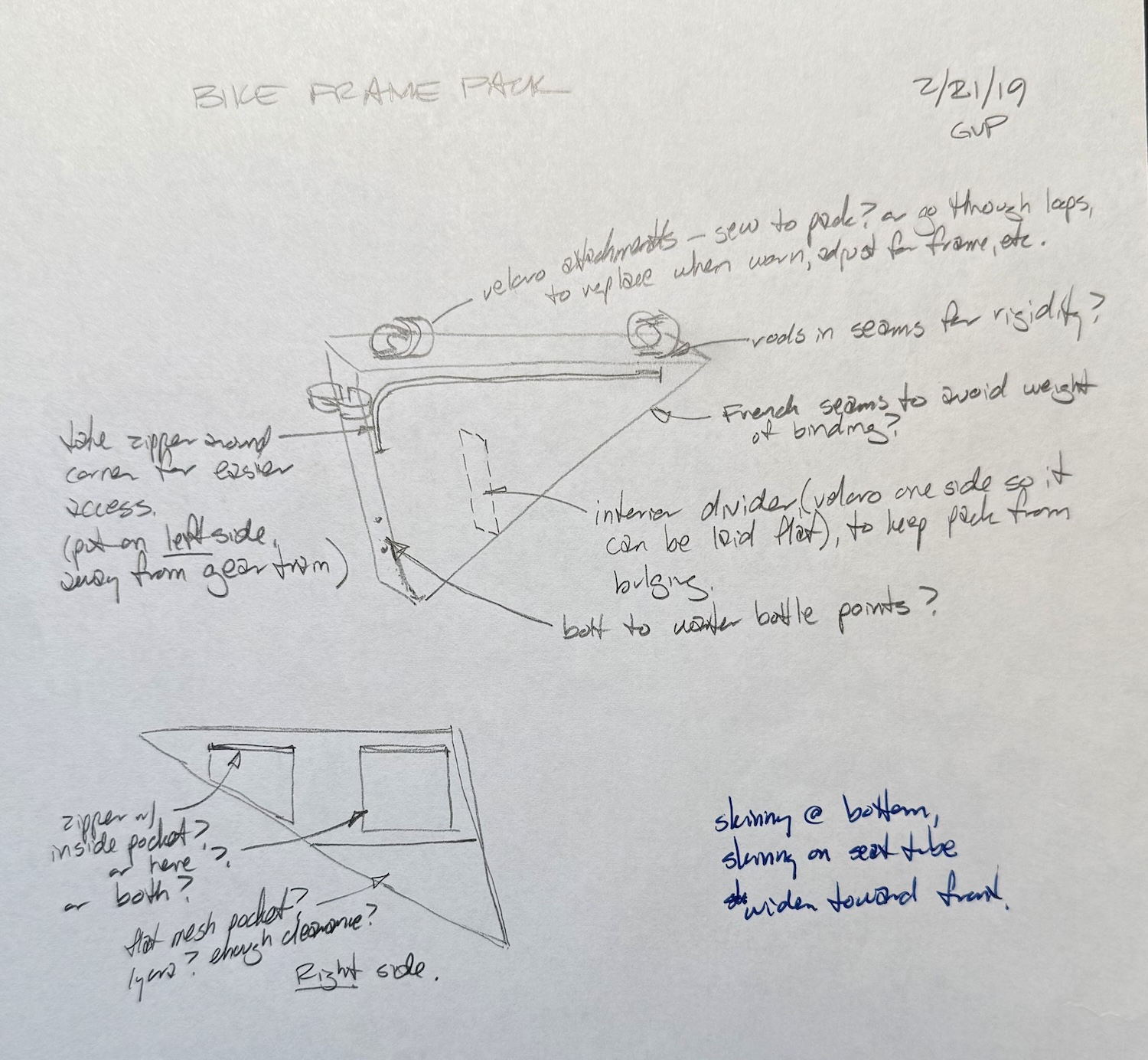 フレームバッグ設計のためのスケッチ。