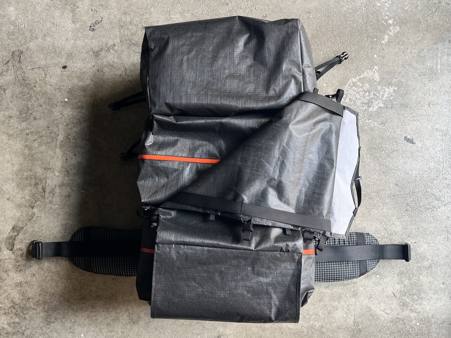 背負子 (素材: X-Pac® ライトスキン、カーボンフレーム。重量: 1020g。製作時間: 4日間。)