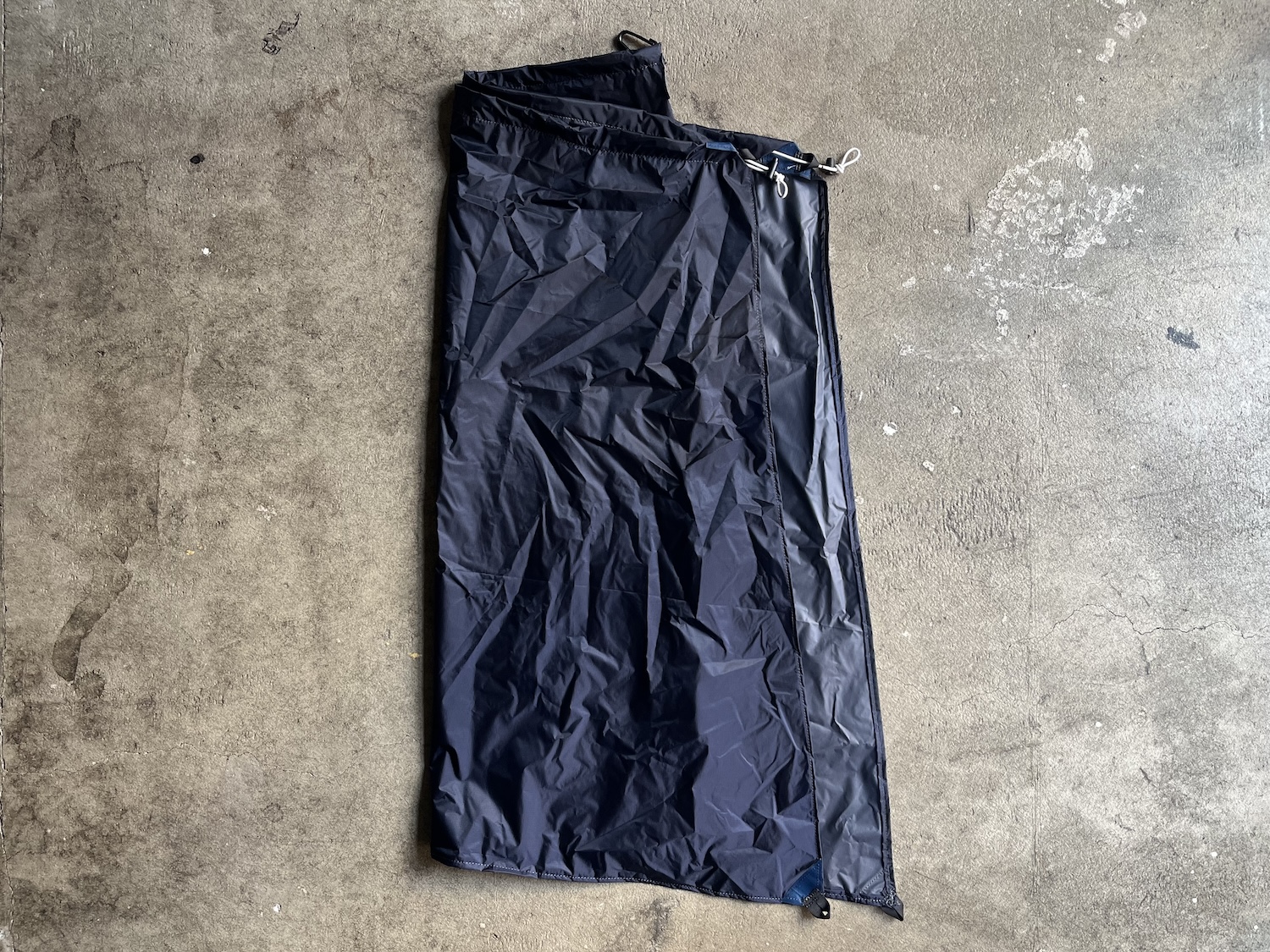 レインスカート兼タープ (素材: リップストップナイロン。重量: 77g。製作時間: 4時間。)