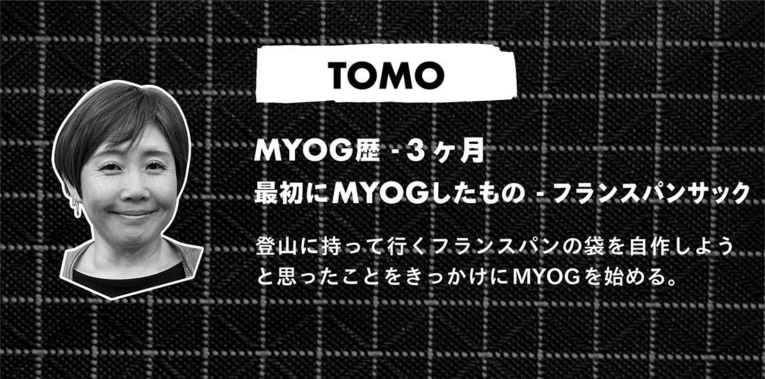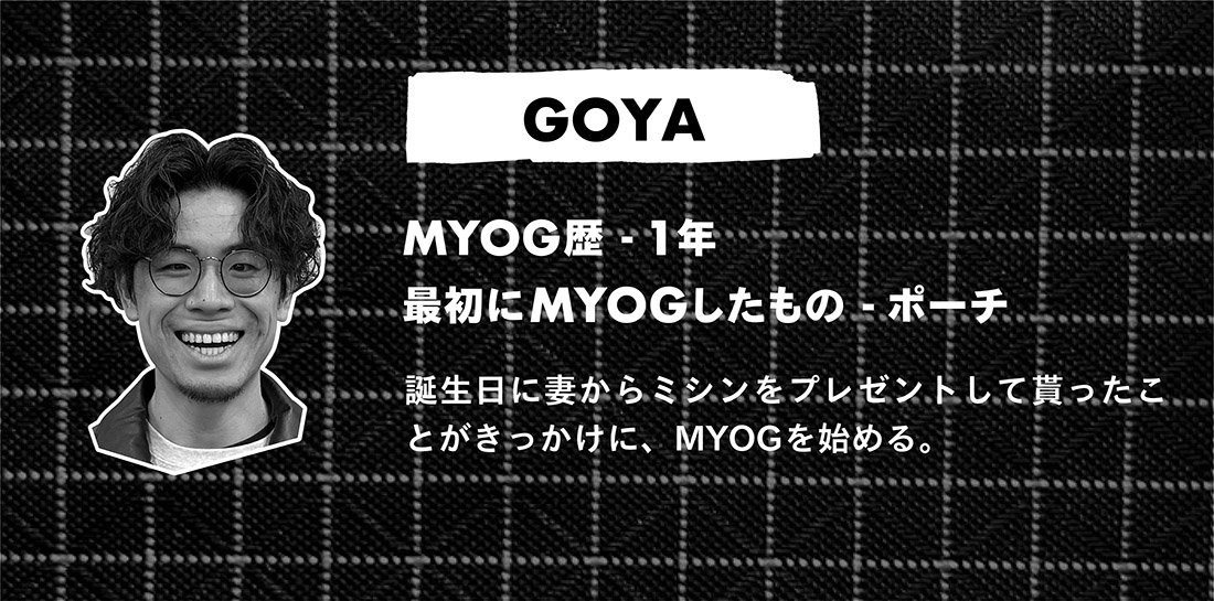 それぞれのMYOGerたちのバックグラウンド(MYOGしたきっかけや動機) と合わせて、各人がMYOGしたギアを紹介する。