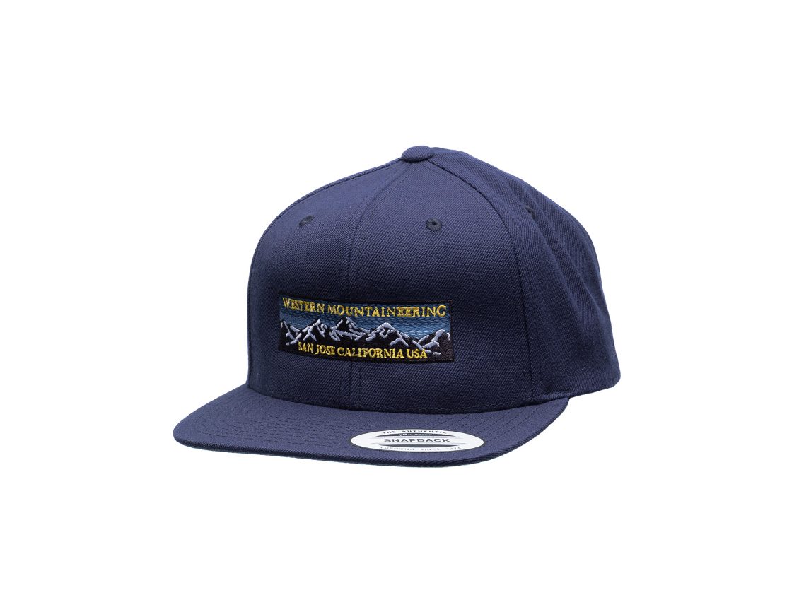 ウエスタンマウンテニアリングのロゴ刺繍入りキャップ。