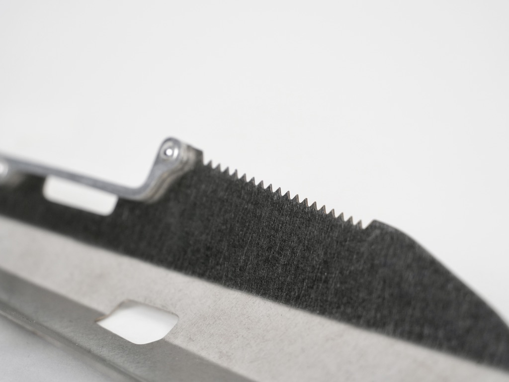 サイド部分には木材を切ることができるエッジソーがついており、簡単な小枝ぐらいであれば、実際に切ることも可能です。