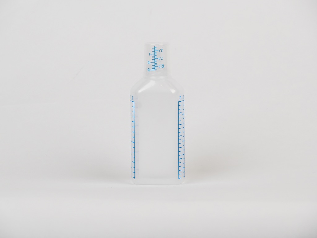 本体に印字されているメモリは100mlボトルは10ml毎、200mlボトルは20ml毎、15mlの蓋は1ml毎に目盛りが印字されているため、自分が使用するアルコール量を細かく計量ができる様になっています。注ぎ口も液垂れがしにくい仕様のため、アルコールを効率的に使用することができます。