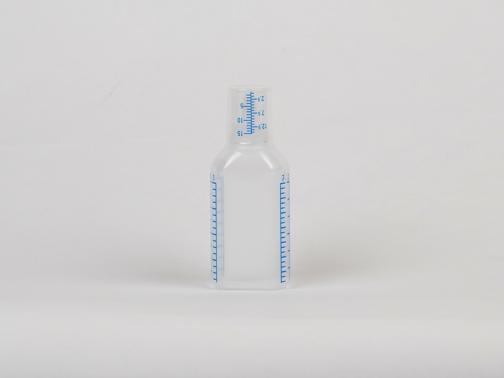 本体はポリプロピレン、蓋が高密度ポリエチレンを使用しており、高い耐薬性をもつ素材でつくられたミニボトル。