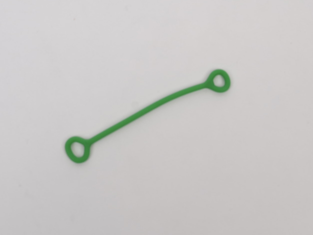 輪が両端に配置されたシリコン製の小さなヒモ。