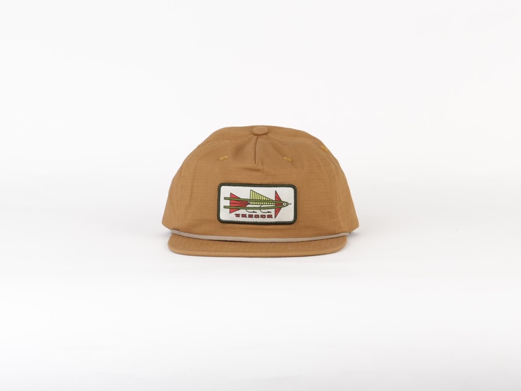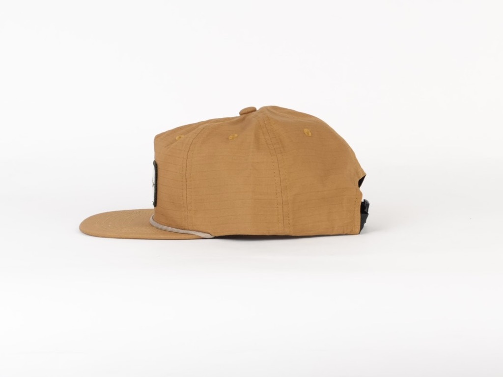 リップストップコットン生地で作られた5パネルキャップです。ツバはフラットに設計されていますのでお好きな形に曲げてご使用ください。背面にサイズ調整可能なナイロンストラップ付き。