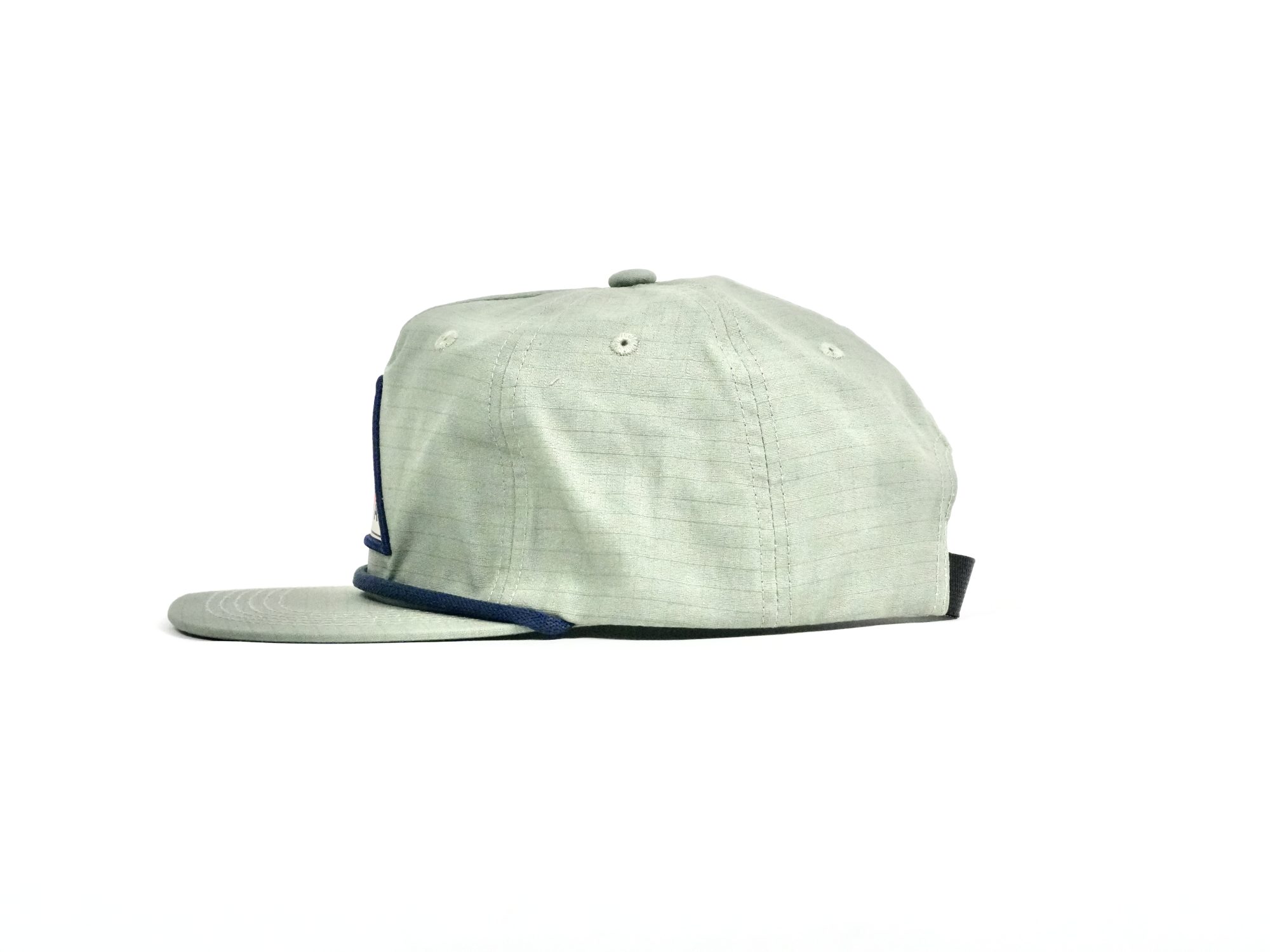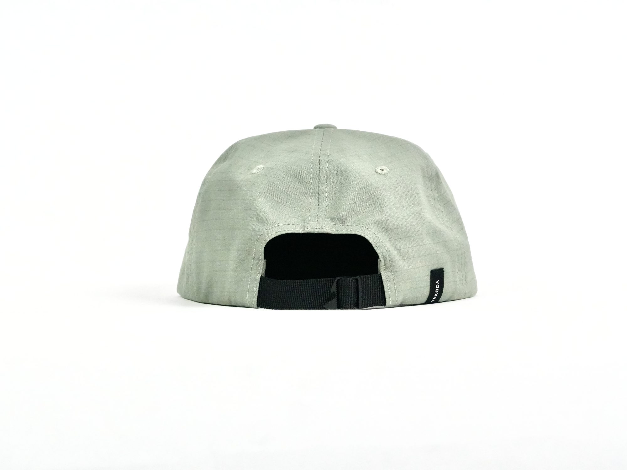 リップストップコットン生地で作られた5パネルキャップです。ツバはフラットに設計されていますのでお好きな形に曲げてご使用ください。背面にサイズ調整可能なナイロンストラップ付き。